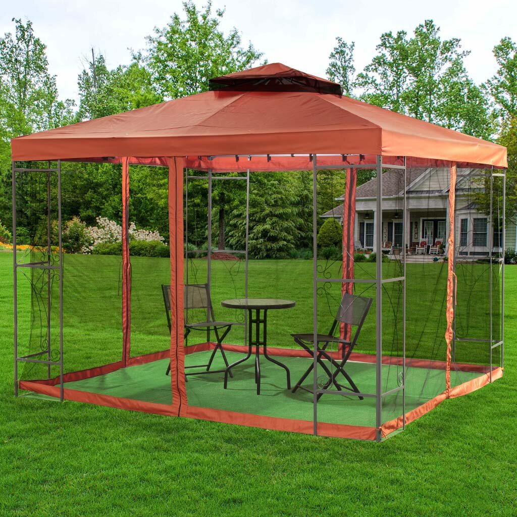 Хотим предложить вам приобрести тент с москитной сеткой, предназначенный для четырехугольного шатра с двойной крышей Green Days. Тент вентилируется, выполнен он в коричневом цвете. Тент защитит вас осадков и прямых солнечных лучей, а москитная сетка от насекомых. Данный комплект подойдёт для шатра, размер которого составляет 3 х 3 х 2,65 м. Тент изготовлен из ткани полиэфир плотностью 180 г с покрытием полиамидом, а произведён данный товар в России.