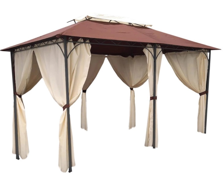 - Шторы в количестве 6 штук, на каждую сторону шестигранной беседки. Их размер – ширина 175 см, высота 195 см. существует возможность увеличить полотно до ширины 200 см, высоты 220 см, но эта опция требует уточнения у продавца;