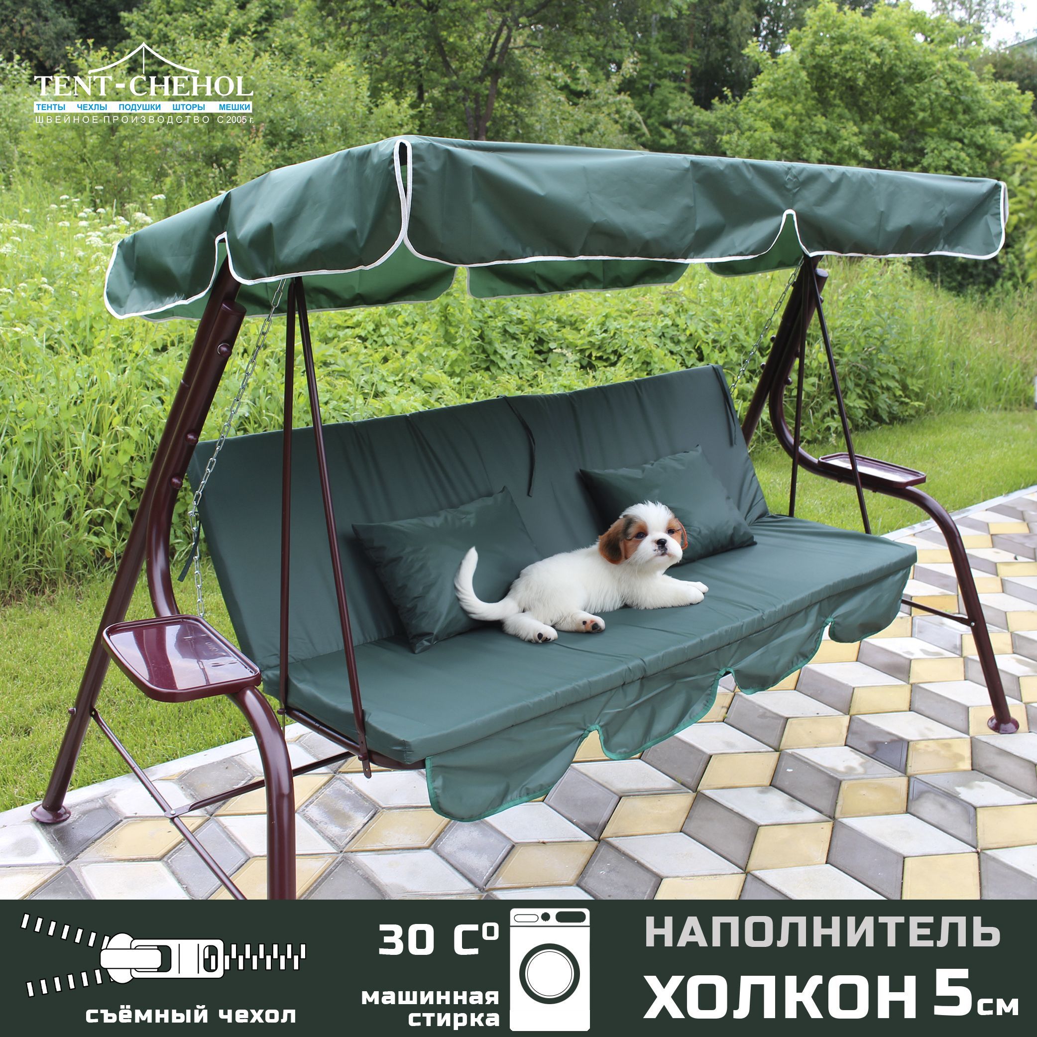 Цвет тента - еловый, что добавляет яркости и свежести вашему саду.